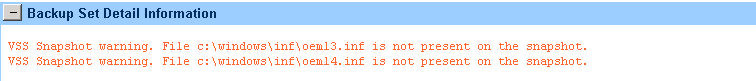 Launch the backup exec console, find your job in “Job Monitor” and edit the include/exclude under Source –> Selections. Add the path “C:\Windows\INF” and the file “OEM13.INF” then do this again for “OEM14.INF” like above.