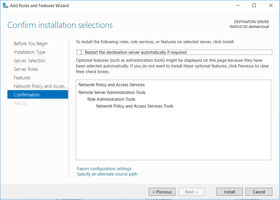 thank you for this. As for me it work on the 5th host ip address (I used 10.1.2.0/27) since it was flagging on the event log: “A RADIUS message was received from the invalid RADIUS client IP address 10.1.2.5”. Its weird since the 10.1.2.4 can be pinged too . my two cents.