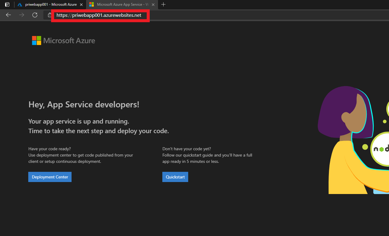 Once it’s all done though, you can use the Front Door URL in the web browser and see that it routes you to the App Service!